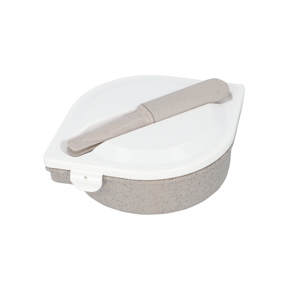 LONCHERA ECO PIANA - Lonchera y cubiertos con material antimicrobiano eco-friendly. Incluye porta cubiertos con cuchara, tenedor y cuchillo. 3 Compartimentos en el interior. Por el tipo de material, el color puede variar. No recomendado para microondas.