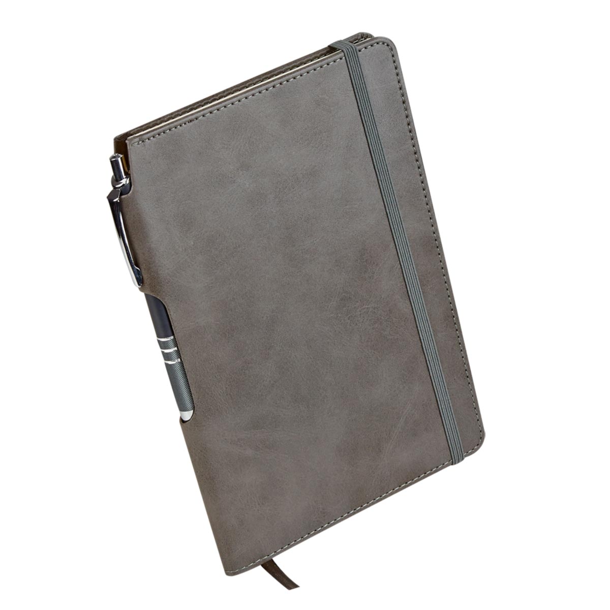 LIBRETA KENYA - Libreta con 80 hojas de raya. Incluye separador de hojas, elástico para cerrar y bolígrafo de plástico.