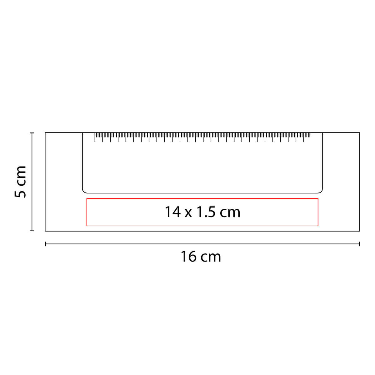 MATERIAL: Cartón / Papel / Plástico MEDIDAS: 16 x 5 cm IMPRESION: Serigrafía MED. EMPAQUE: 35 x 44 x 29 cm PESO EMPAQUE: 180 Kg PIEZAS EMPAQUE: 1000