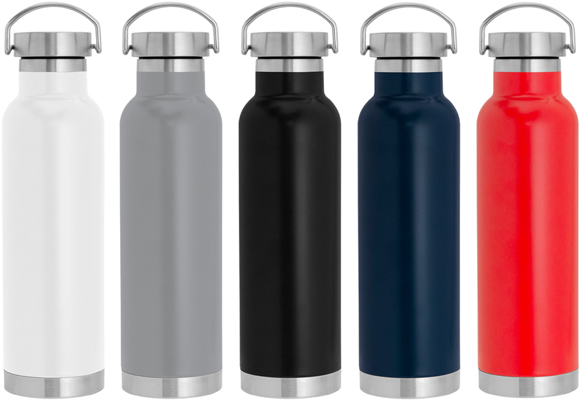 TERMO "HYDRO II" Botella doble pared, sellada al vacío. Interior en acero 304 y exterior en acero 201. Tapa de acero a rosca con manija rebatible metálica . La medida de este termo es tan practica que con el tendras el liquido necesario para estar hidratado en el momento del día que elijas. Mantiene hasta 12 hs la temperatura de las bebidas calientes y 24 hs de las bebidas frías. Presentación en caja de regalo.