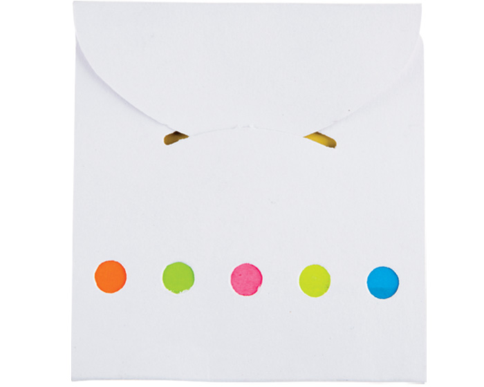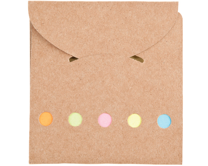 POST IT - Sobre cuadrado de papel reciclado con notas y banderas adhesivas.