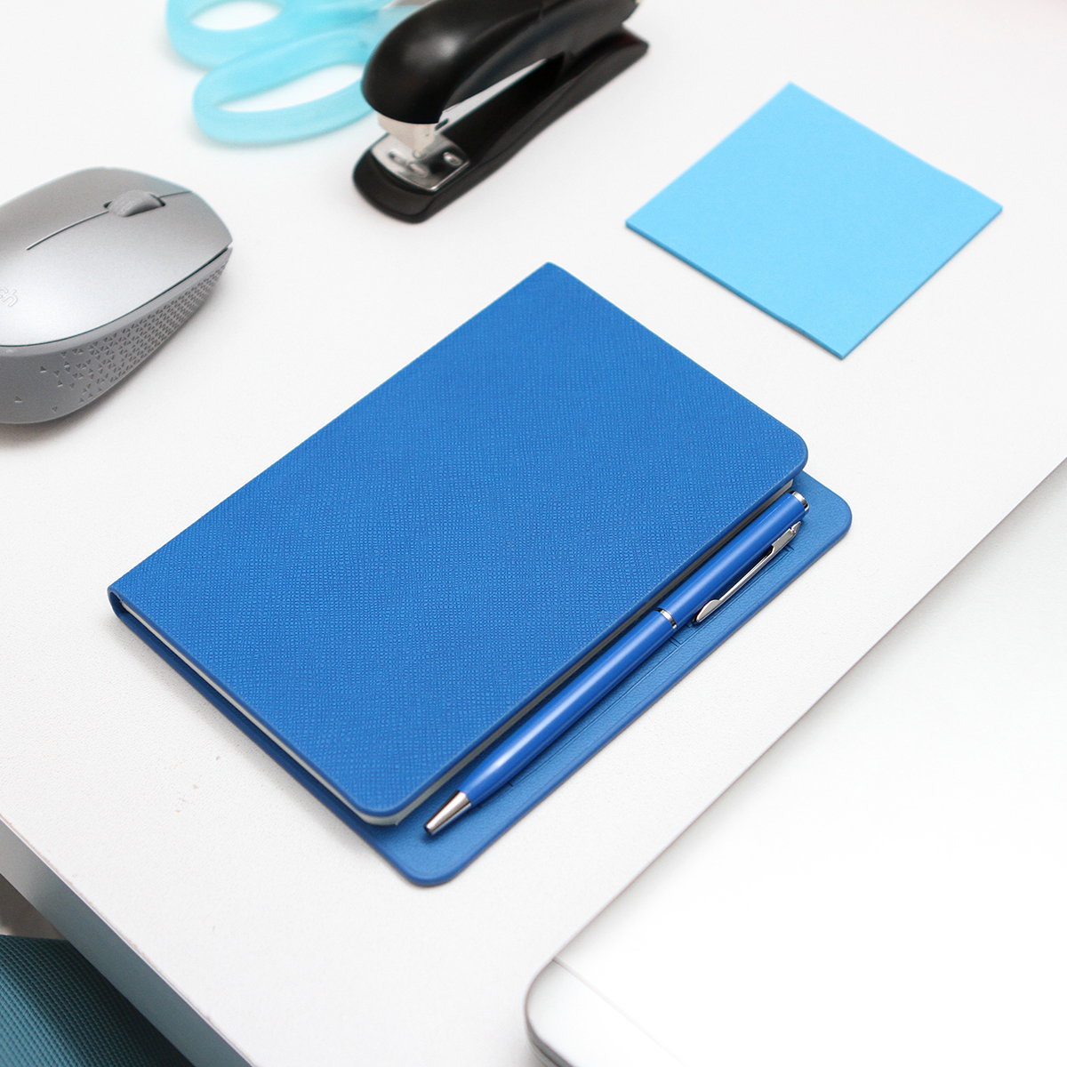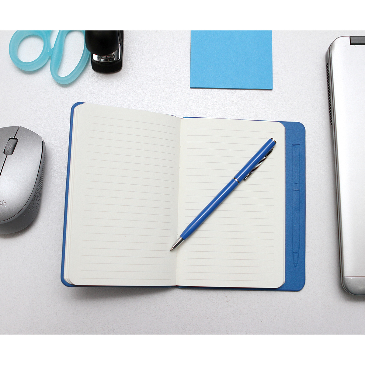 Libreta Siena. - Libreta fabricada en curpiel con imán porta pluma, 80 hojas de raya y bolígrafo metálico tinta negra.