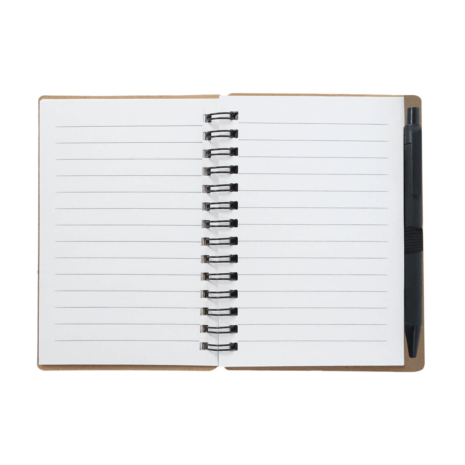 JUN Mini libreta ecológica con espiral, purpurina, bolígrafo y 70 hojas de raya.