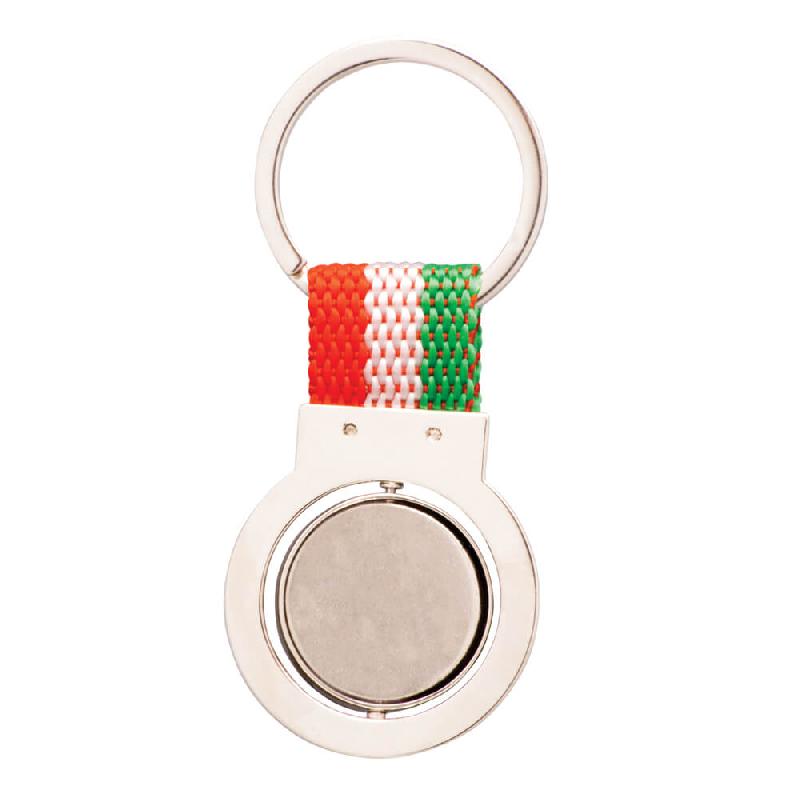 Llavero metálico Medidas: 3.8 cm x 5.7 cm Material: Metal. Empaque: Bolsa de celofán.