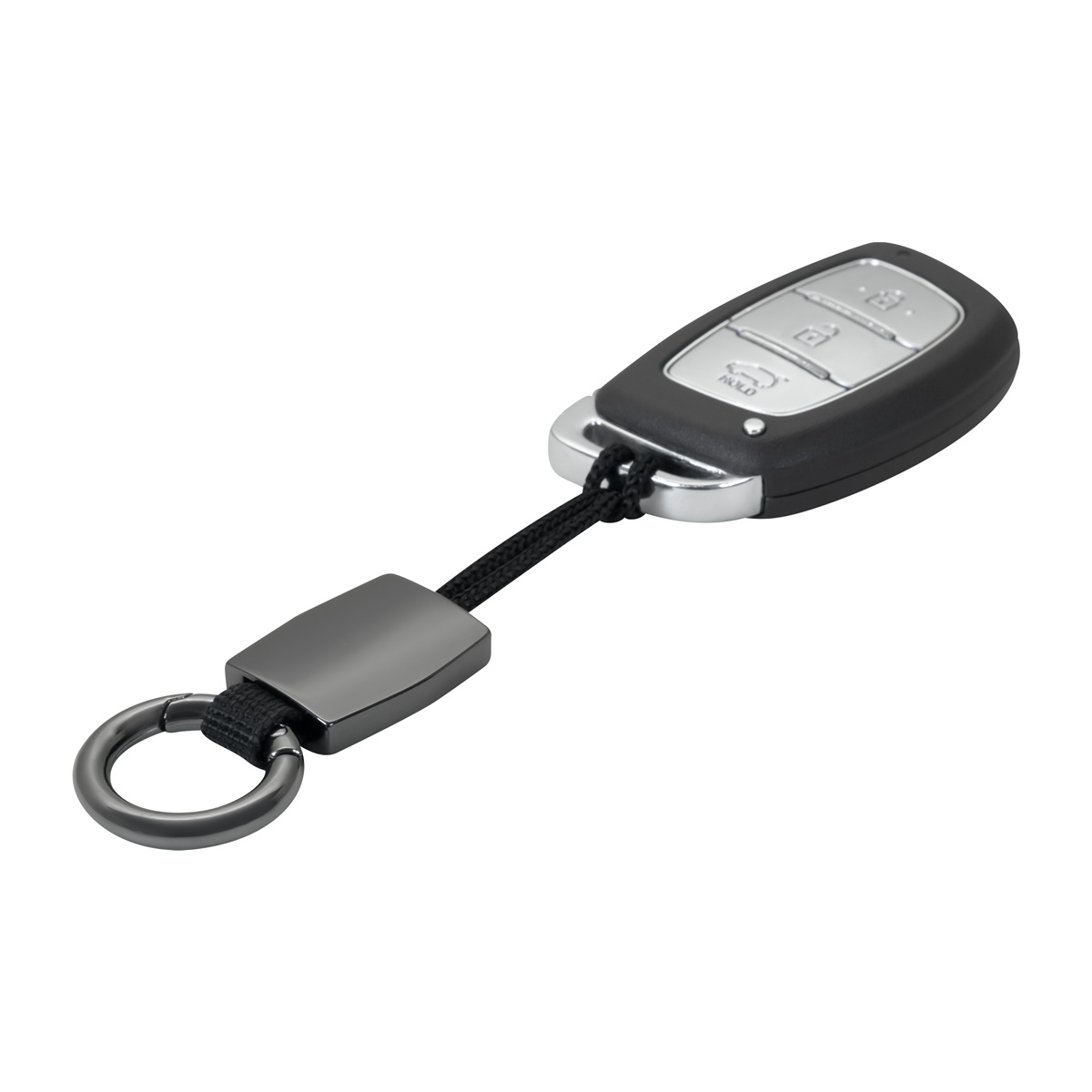 LLAVERO STROP - Llavero metálico con argolla tipo gancho. Correa diseñada especialmente para llaves de automóviles con ranura estrecha. Este práctico llavero te permite sujetar tus llaves de manera rápida y sencilla. Incluye caja individual.