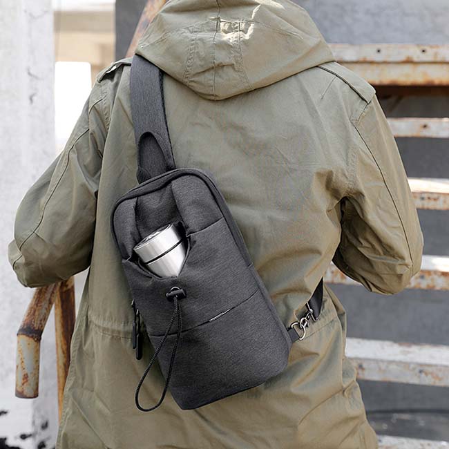 Bandolera Daniels 1.- Impermeable al agua 2.- Asa corta de mano 3.- Compartimiento frontal para guardar bebidas con cierre en jareta ajustable. 4.- Bolsillo al frente con cierrre en zipper. 5.- Organizadores interiores y compartimiento para tablet 6.- Correa en diseño lateral cruzado.