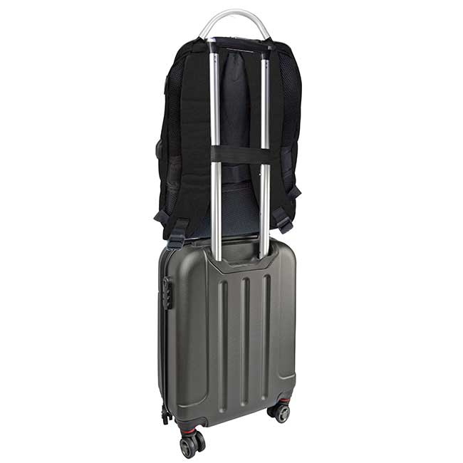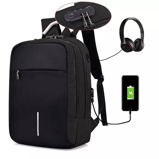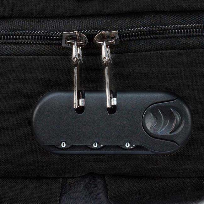 Backpack LeBron Salida lateral para usb y para audífonos. Doble compartimiento principal. Resistente al agua. Amplio comportamiento al frente. Candado de seguridad. Sistema trolley sieeve. Correas ajustables y acojinadas. Color: Negro