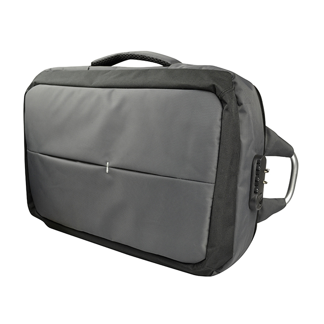 Compartimento interior para laptop. Refuerzo posterior acojinado y bolso con zíper. Correas ajustables y acojinadas.