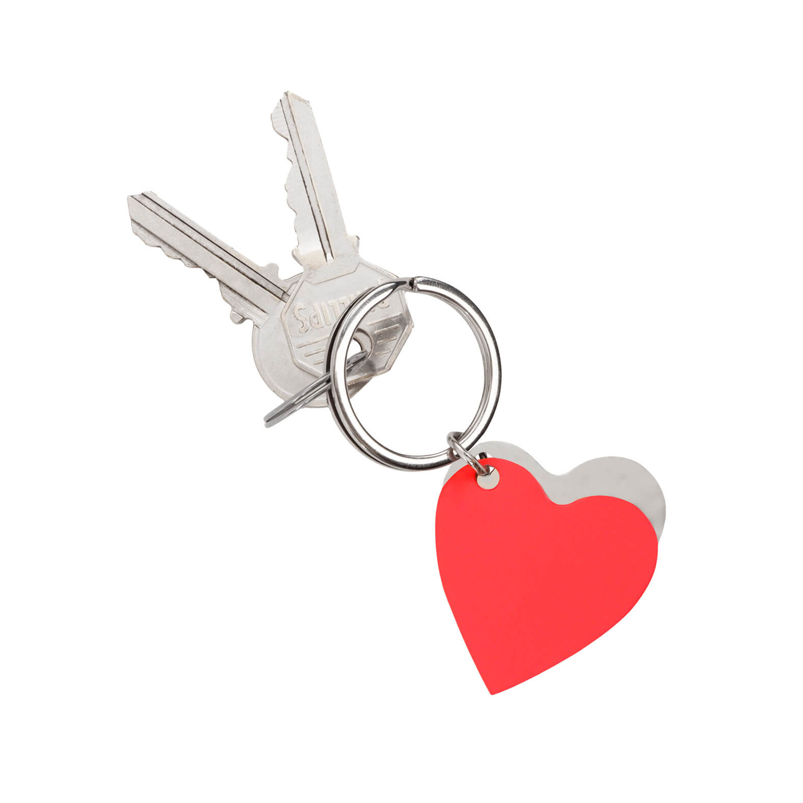 SOUL Llavero metálico doble en forma de corazón, placa sólida y silueta, con arillo reforzado para colgar.