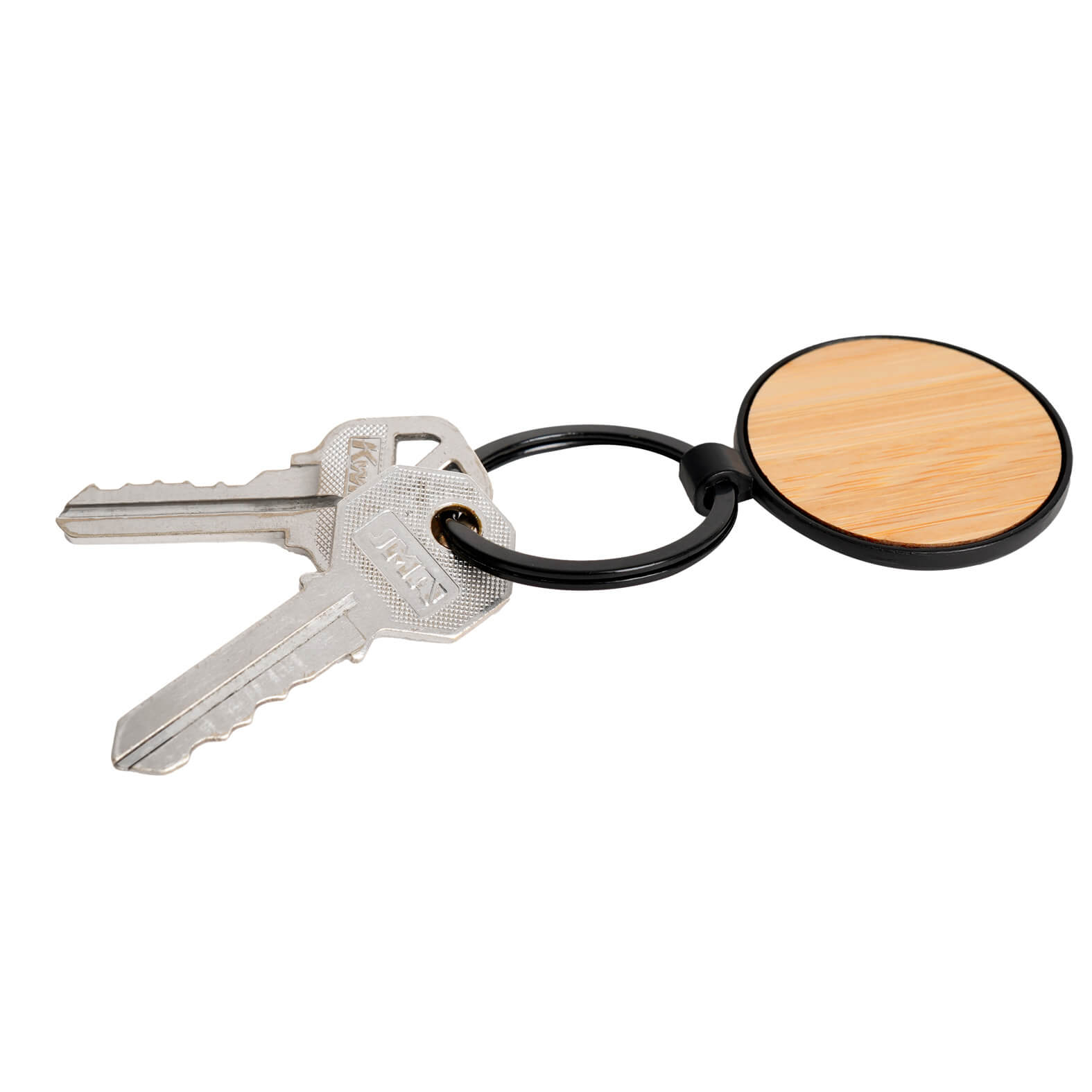 SORNA Llavero circular metalico con bambú y aro reforzado.