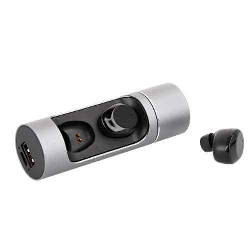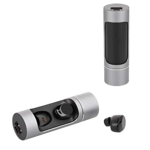 MORAT Audífonos bluetooth con botón de encendido/apagado y mecanismo touch. Incluye estuche de aluminio recargable con power bank integrada, gomas de repuesto y cable de carga.