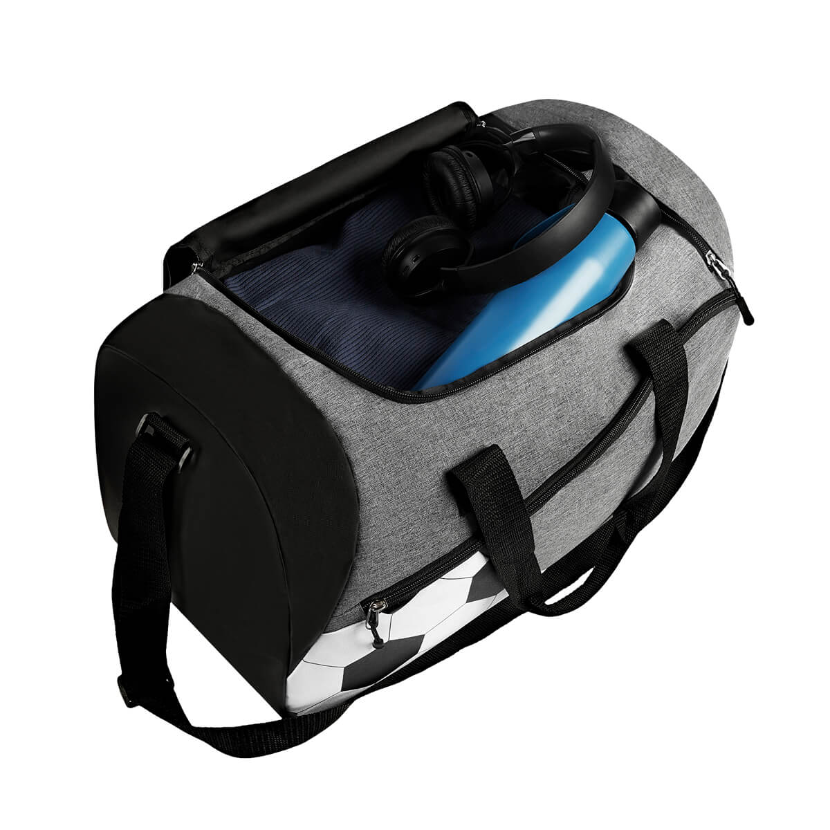 MALETA DEPORTIVA SOCCER - Maleta deportiva. Compartimento principal con cierre y un bolsillo adicional en la parte frontal. Además, cuenta con un compartimento lateral para calzado. Incluye correa ajustable para hombro y asas de agarre superior.
