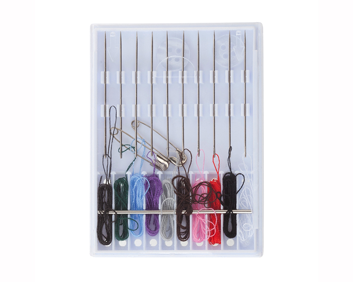 LORENA - Costurero portátil con tapa deslizable. Incluye: aguja, botones, seguros, variedad de hilos y alfileres.