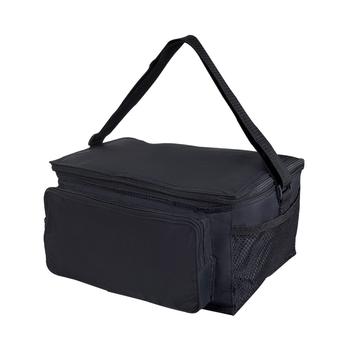 HIELERA 2 SIX - Interior metalizado plastificado e impermeable. Bolsa principal y frontal con cierre. Bolsas laterales de red. Incluye correa ajustable. Capacidad para 12 latas.