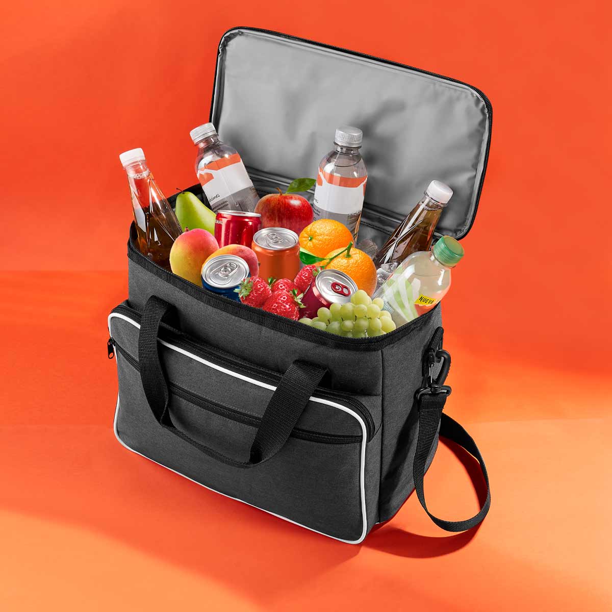 LONCHERA ALTIMA - Interior plastificado. Bolsa principal y bolsas frontales con cierre. Asas con agarre de velcro y correa ajustable. Capacidad para 20 latas.