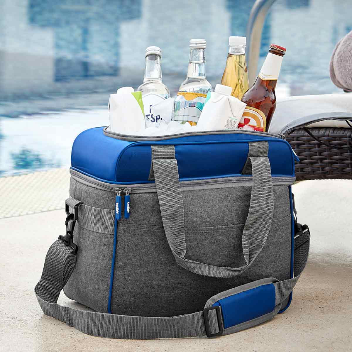 HIELERA LORRY - Interior plastificado impermeable. Bolsa principal y bolsa superior con cierre para fácil acceso a interior, bolsa frontal, asas y correa ajustable. Capacidad en parte superior para 4 latas y en parte inferior 10 latas. Este producto por ser últimas piezas puede presentar alguna variación, no se aceptan devoluciones.