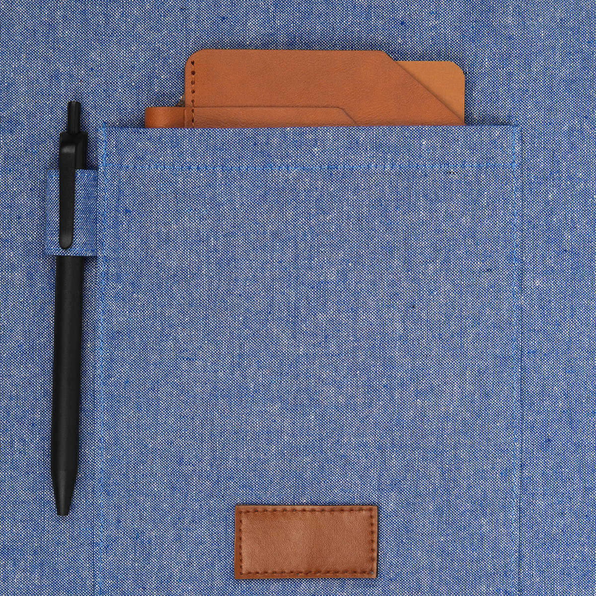BOLSA KORU - Bolsa ecológica de algodón con fuelle y asas. Incluye una bolsa frontal que estiliza el diseño, acompañada de un parche decorativo de PU.