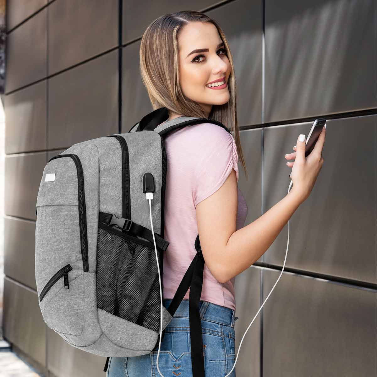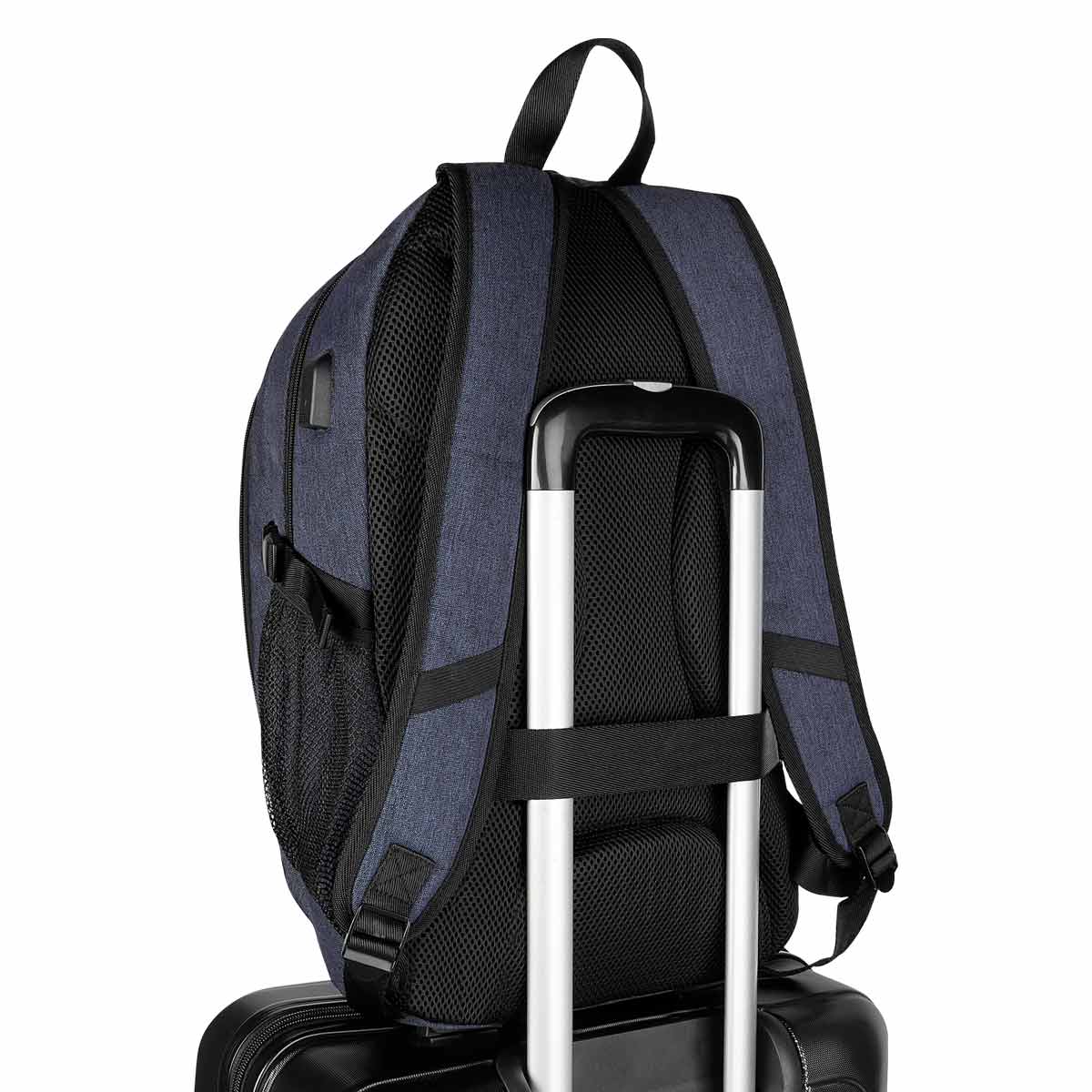 MOCHILA SLAVONSKY - Mochila con salida USB (se requiere conectar a batería portátil) para cargar smartphone. Bolsa principal con espacio para laptop de 17" y tablet. Bolsa frontal con organizador y 2 bolsas frontales con cierre. 2 Bolsas laterales de red con broches ajustables de plástico. Salida para audífonos. Aditamento especial trasero para poner en trolley. Placa metálica removible para fácil grabado. Respaldo y tirantes acojinados.