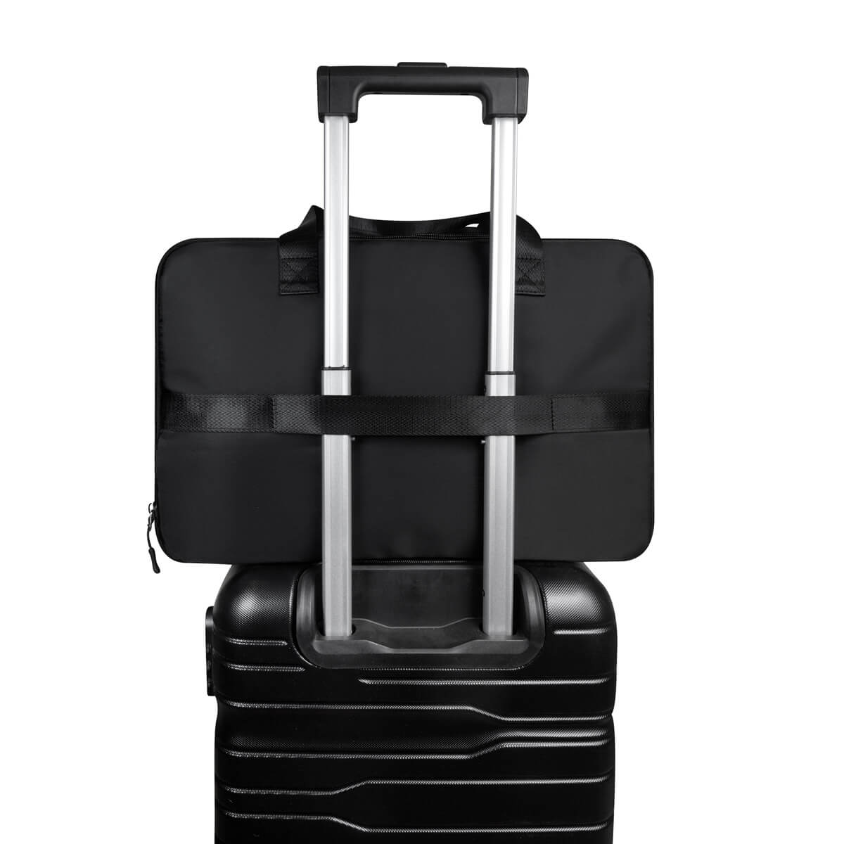 MALETA TERVED - Maleta con compartimento expandible para ampliar su capacidad según tus necesidades. Incluye un compartimento principal con bolsillo para llevar objetos pequeños. Un segundo compartimento con cierre para expandir o contraer y broche elástico para mantener tu ropa y accesorios fijos en todo momento. Agrega también un bolsillo frontal con cierre y dos bolsillos laterales. Su correa para hombro es ajustable y removible, gracias a sus broches de plástico. En la parte posterior incluye banda para llevar en trolley.