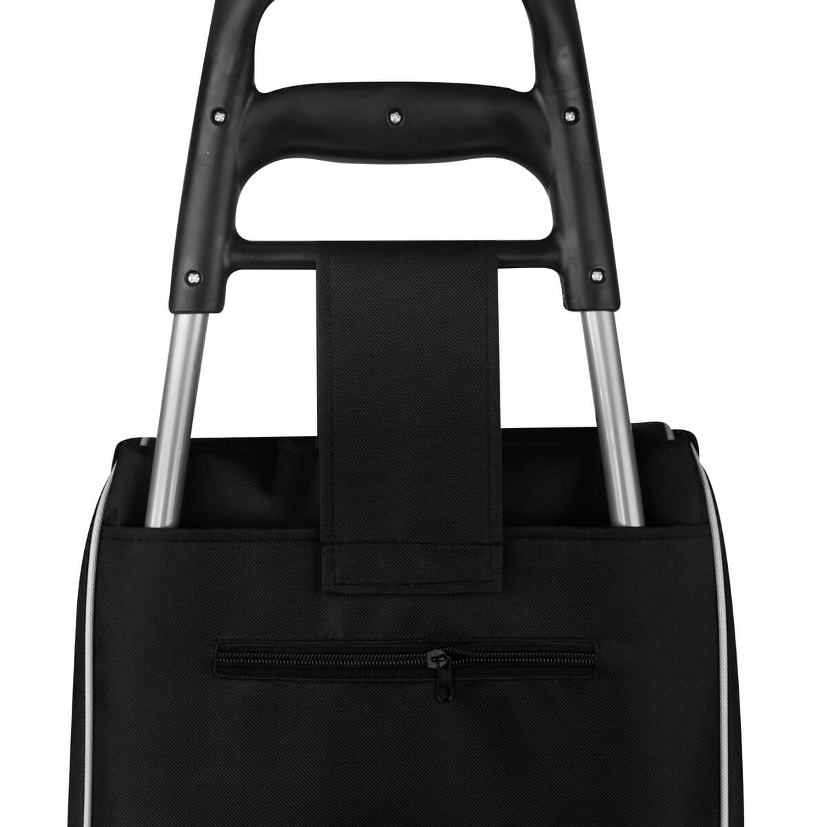 CARRO SUPERMERCADO VELEA - Bolsa para supermercado con jareta y solapa. Incluye bolsa posterior con cierre, estructura de metal, base para sostenerse, agarradera y llantas de plástico. Bolsa desmontable con velcro en la parte posterior. Ideal para las compras de fin de semana.