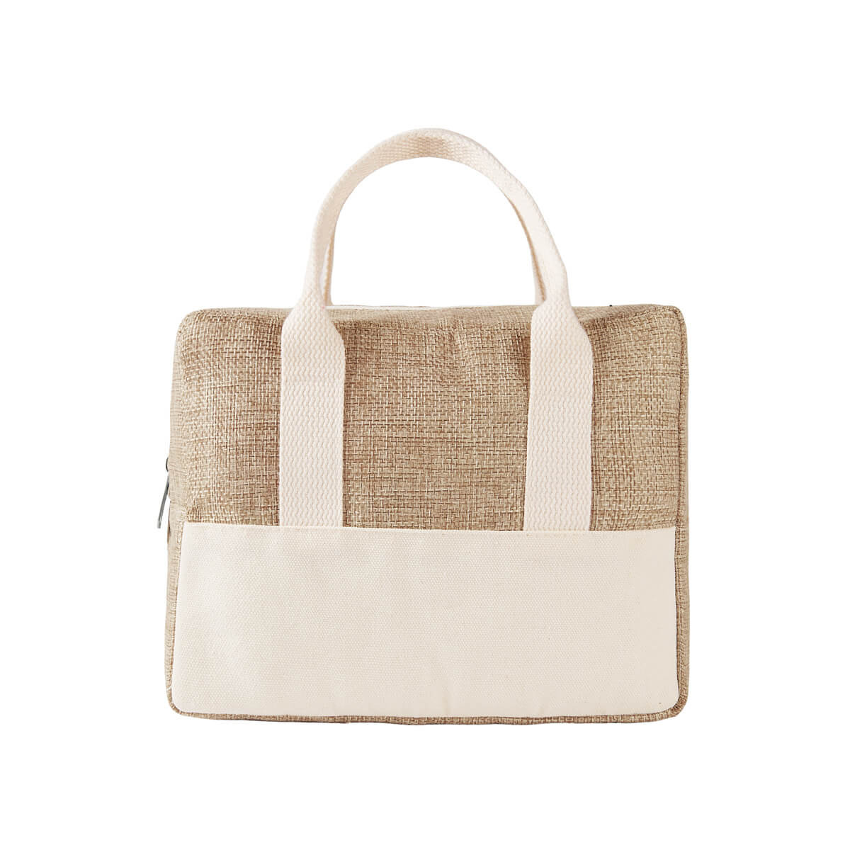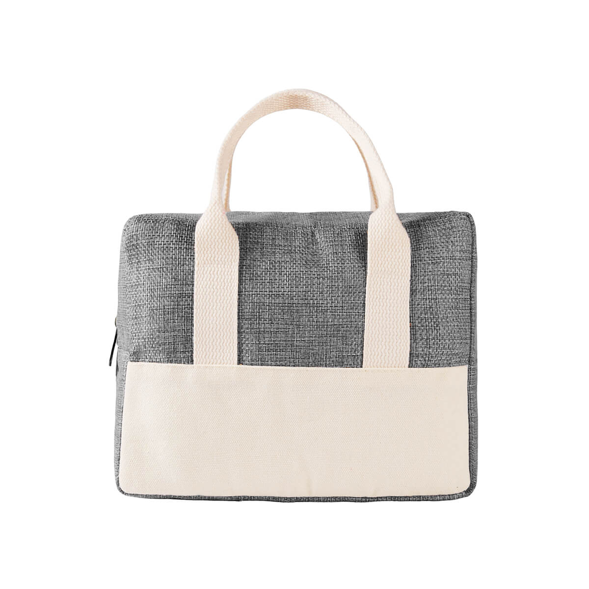 LONCHERA LEINEN - Lonchera con interior metalizado. Compartimento principal con cierre. Práctica, ligera y con un toque natural, esta lonchera es ideal para el día a día, ya que combina poliéster con detalles en algodón ecológico, una alternativa funcional con conciencia ambiental. Capacidad 6 latas.