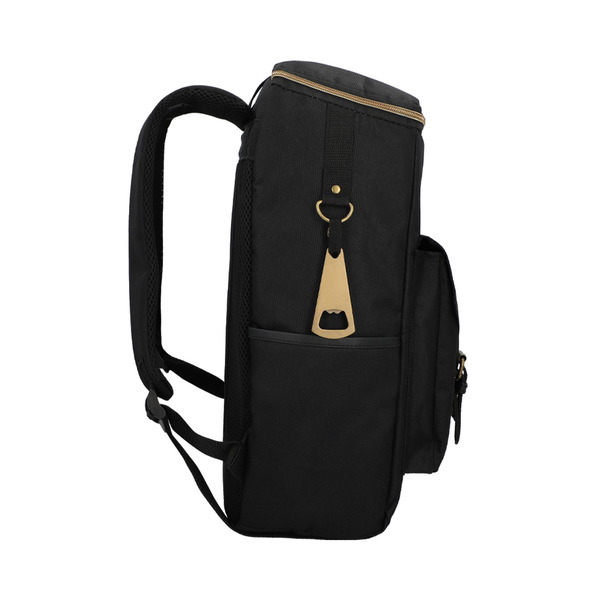 MOCHILA-HIELERA PAIA - Interior plastificado. Compartimento interior removible impermeable. Bolsa principal, bolsa frontal y 2 bolsillos laterales. Broches frontales de hebilla metálica. Incluye destapador metálico. Capacidad para 24 latas.
