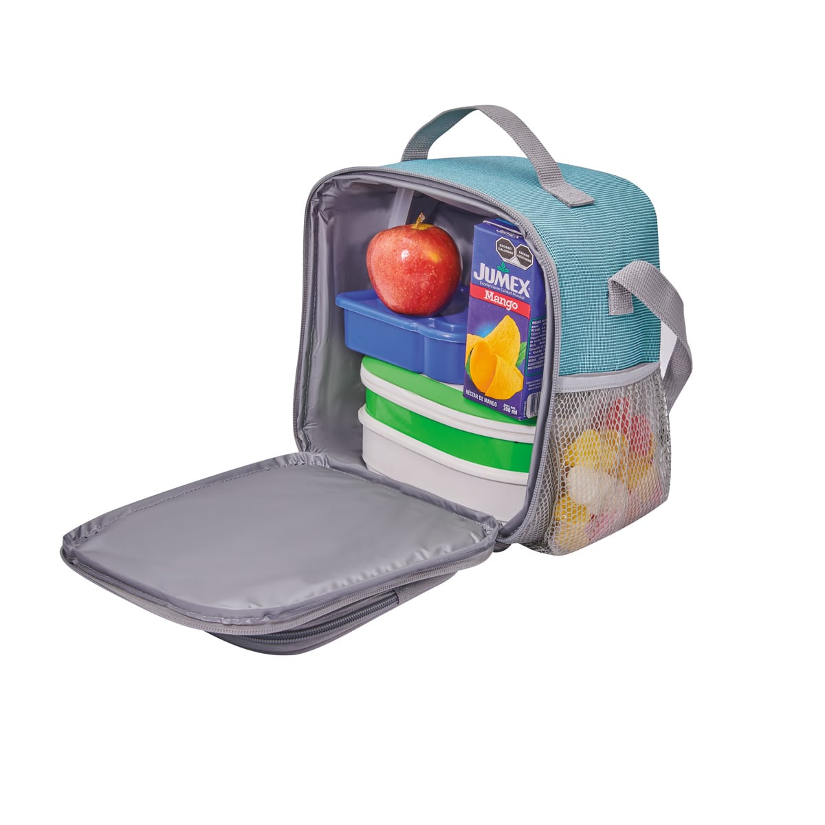 HIELERA TAKABUR - Interior plastificado resistente al agua. Compartimento principal con cierre. Bolsillo frontal con cierre y malla. Dos bolsillos laterales de malla. Asa superior y asa larga ajustable. Capacidad de 8 latas.