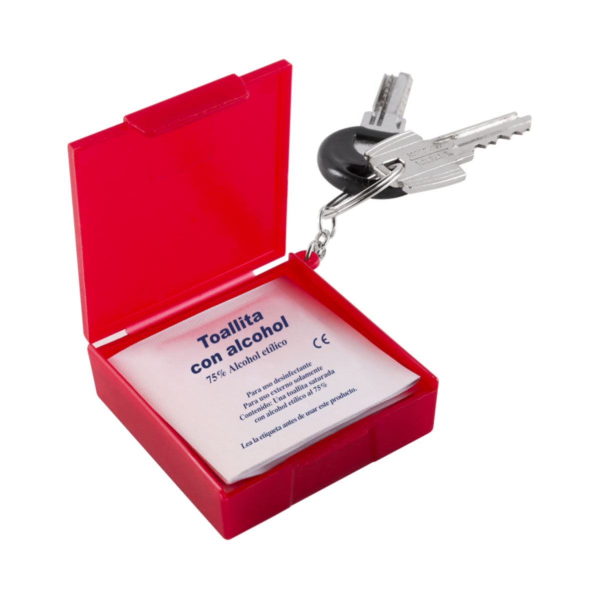 LLAVERO CON PADS DE ALCOHOL - Incluye 10 toallitas con alcohol al 75%.