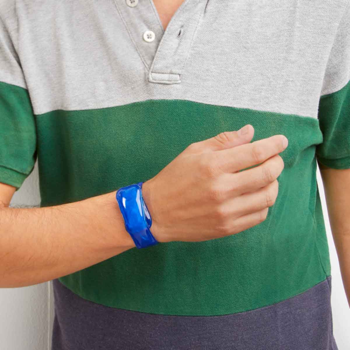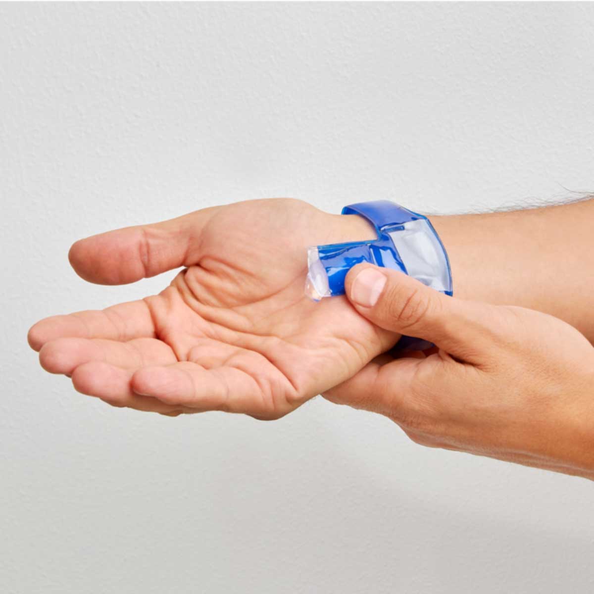 PULSERA GEL SANITIZANTE SHANI - Pulsera de plástico con compartimento recargable para gel sanitizante. Broche velcro. Capacidad 15 ml.