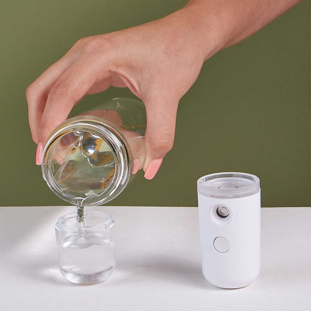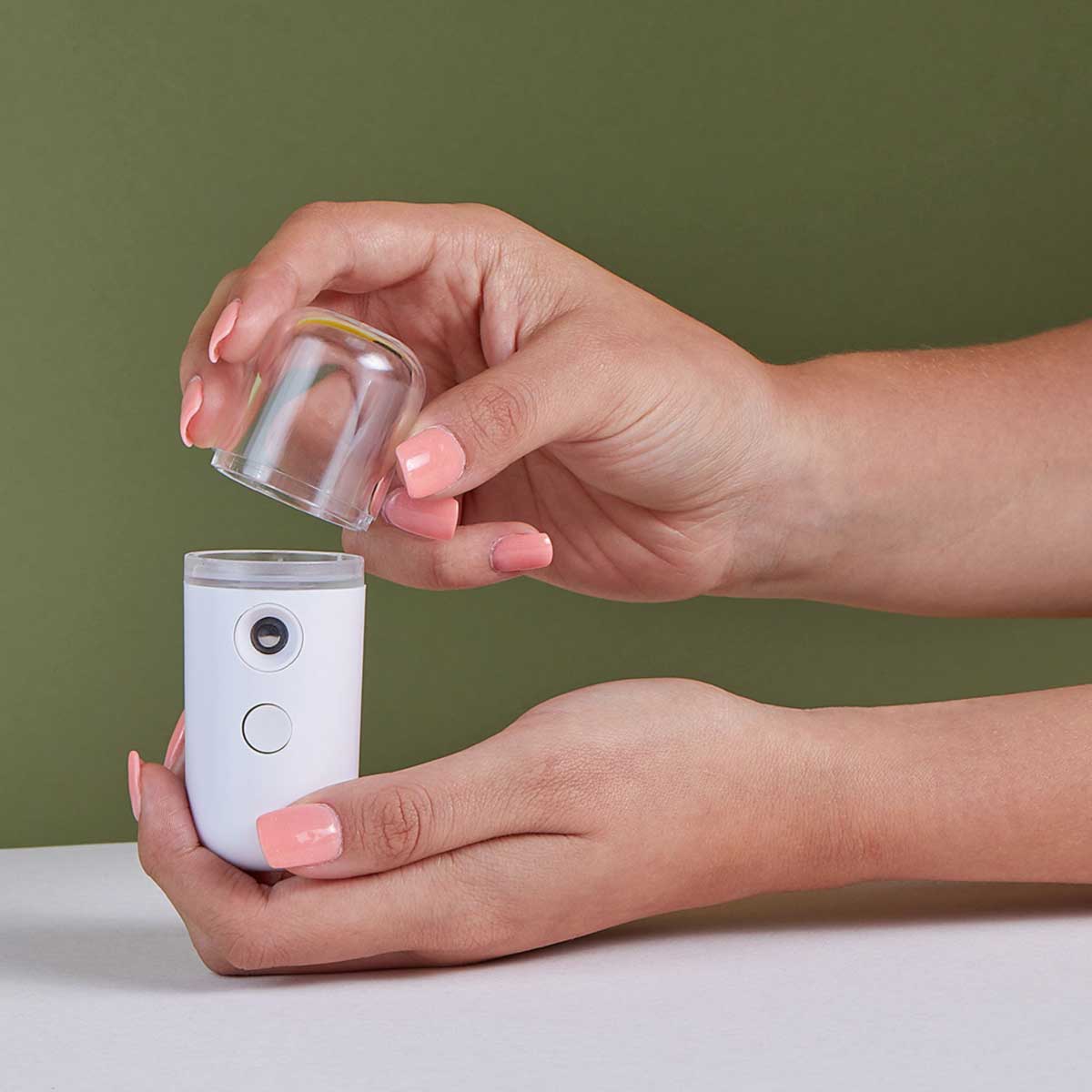 HUMIDIFICADOR PORTATIL NAHA - Difusor / humidificador portátil. Tamaño mini, ligero y fácil de llevar. Incluye cable USB para carga. Llenar con agua natural con PH alcalino ya que otro tipo de agua puede bloquear el chorro de pulverización.