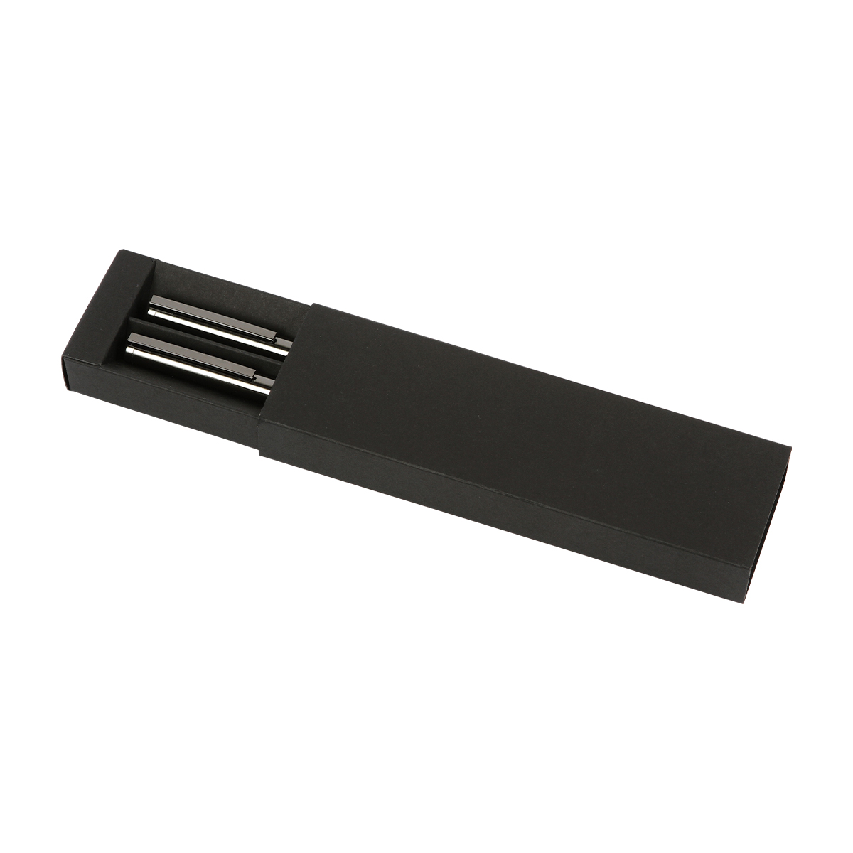 MEDIDAS: Bolígrafo: 14x1 cm. | Caja: 17.3x5.1 cm. MED. EMPAQUE: 39x30x26.5 PIEZAS EMPAQUE: 100