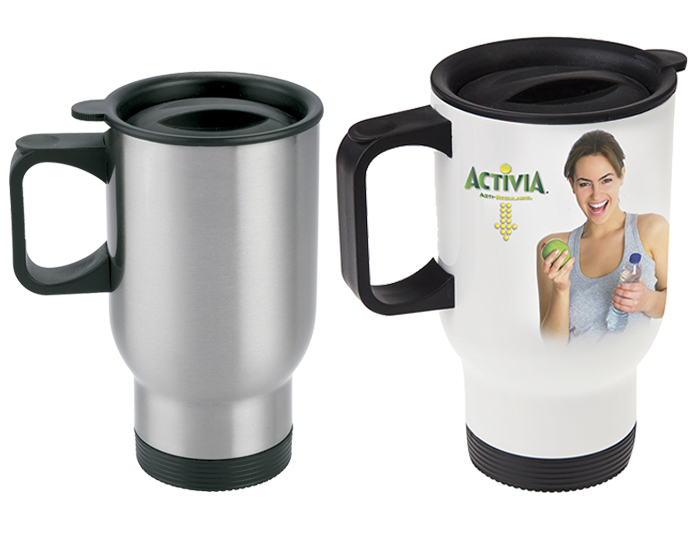 ROXIO - Termo de viaje de acero inoxidable para sublimar, ideal para colorase en el portavaso del auto; cuenta con asa y tapa de plástico con cierre a presión. CAP. 450 ml. (15 OZ). Presentación: caja individual.