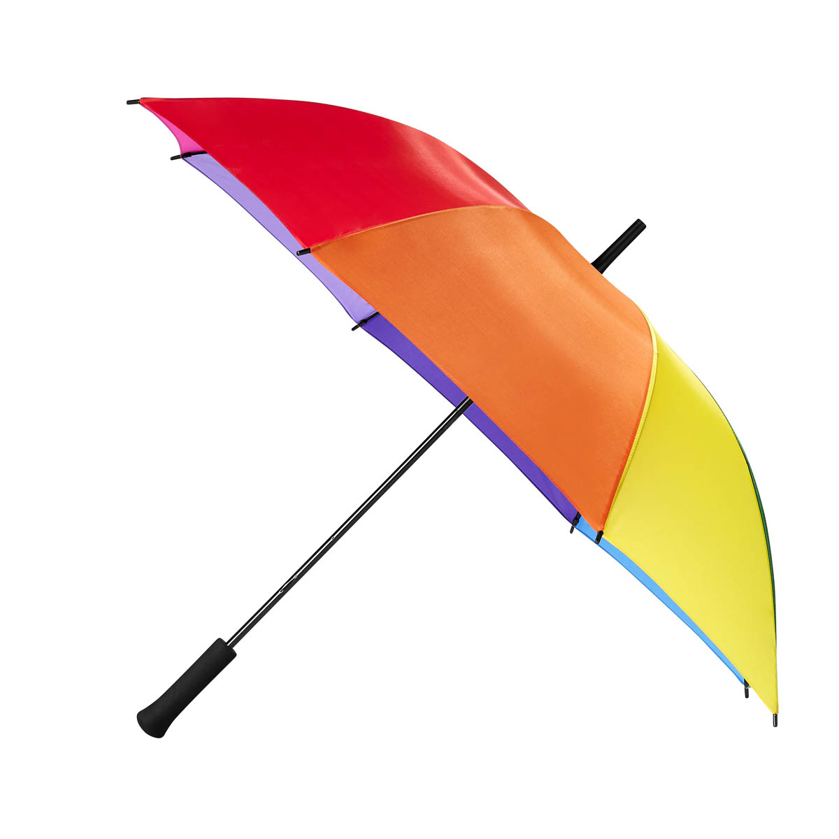 PARAGUAS PRIDE - Paraguas de 8 paneles, cada panel de un color. Sistema manual. Mango de esponja. Su diseño arcoíris, colorido y alegre refleja la diversidad y la inclusividad.
