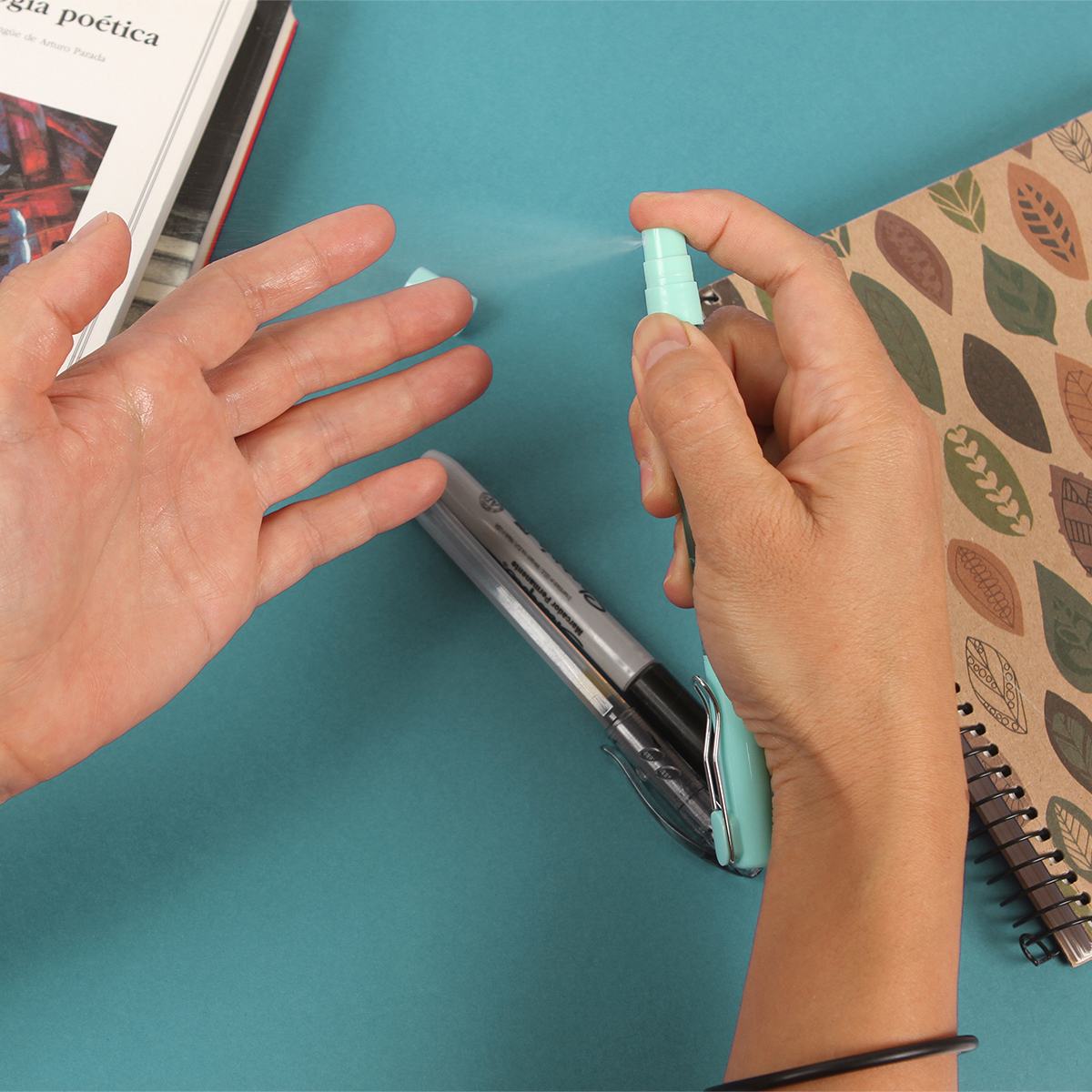 Bolígrafo Kenge. - Bolígrafo Antibacterial fabricada en plástico ABS con atomizador y contenedor de 4 ml., para liquido desinfectante, con clip de metal y tinta de gel color negro. No incluye liquido.