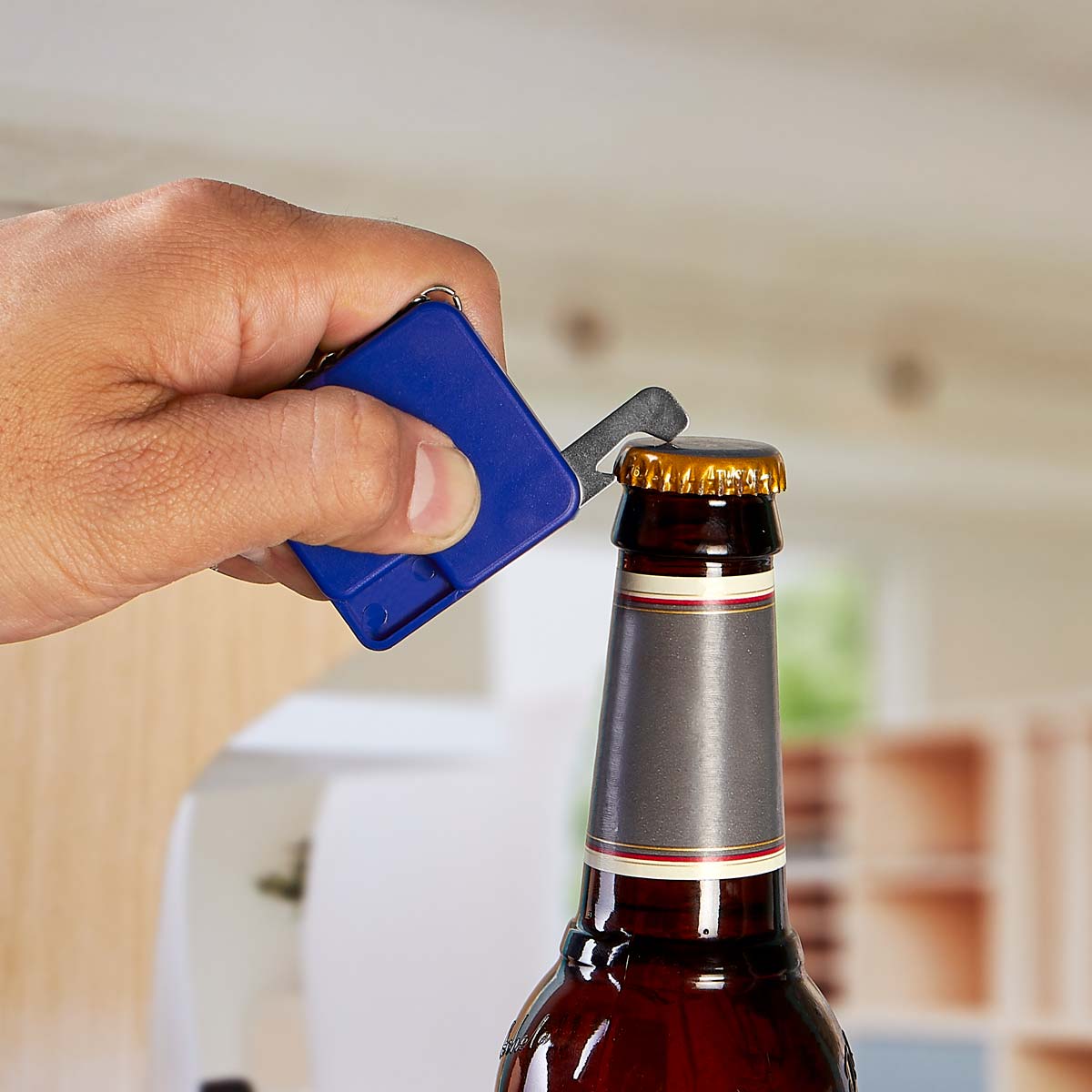 LLAVERO FLEXÓMETRO LIBEREC - Llavero destapador con flexómetro de cinta metálica de 1 m.