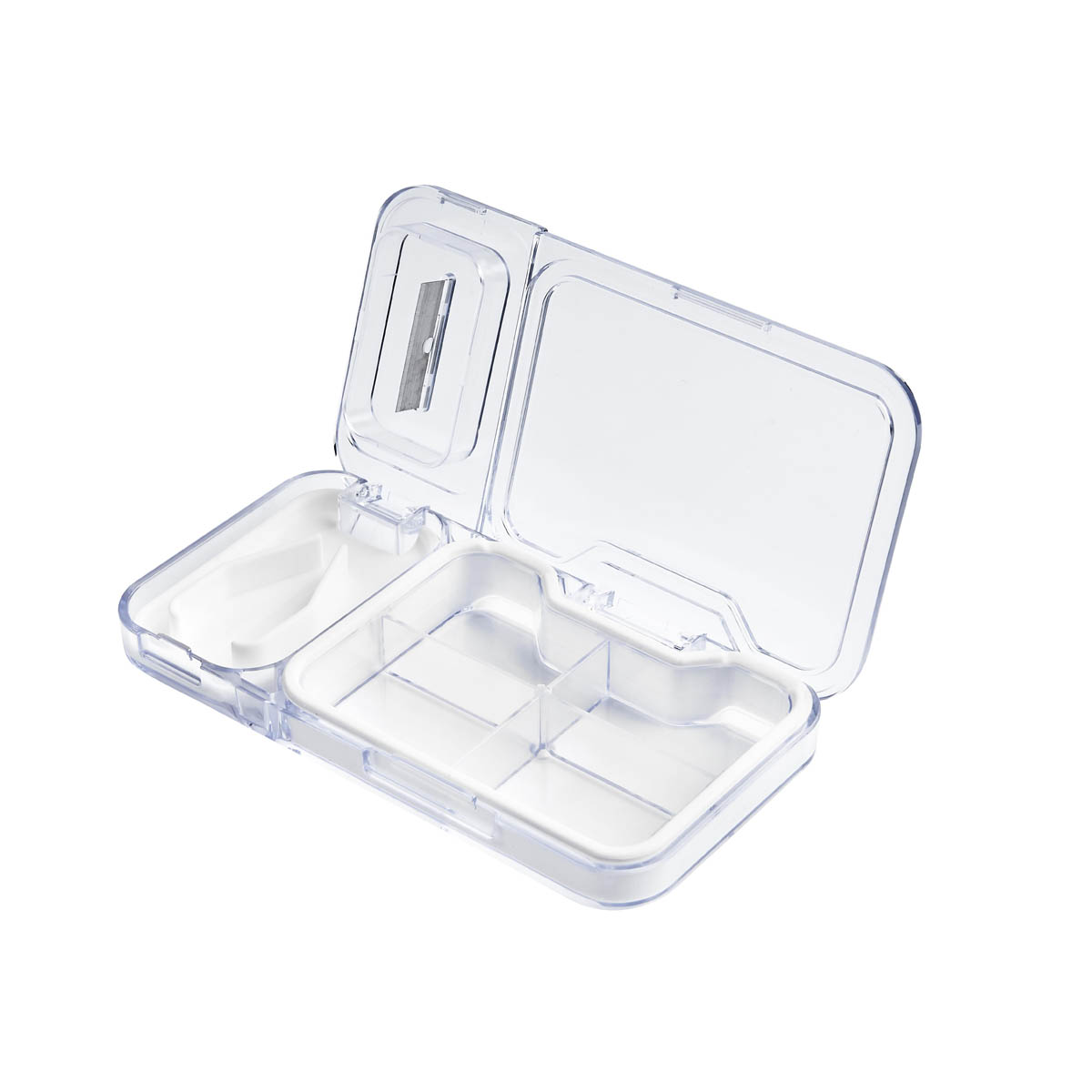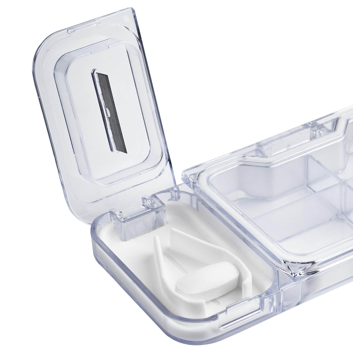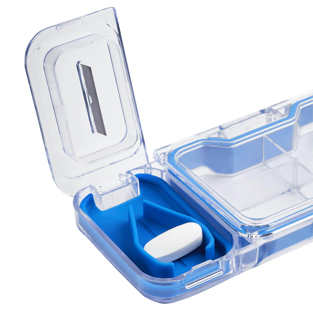 PASTILLERO CANIF - Pastillero con cortador integrado que permite dividir tus pastillas de manera segura y precisa. Además, sus cuatro compartimentos ofrecen un espacio óptimo para organizar tus dosis de manera sencilla y eficiente. Compacto y portátil, es ideal para llevar en el bolso, en la oficina o durante tus viajes.