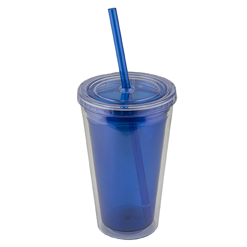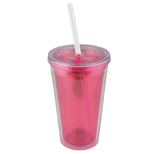 TROPICAL Vaso de doble pared de plástico con popote incluido.