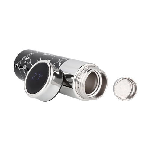 QATAR Termo con doble pared de acero inoxidable insulado al vacío. Incluye filtro infusor y termómetro digital que mide la temperatura de sus bebidas.