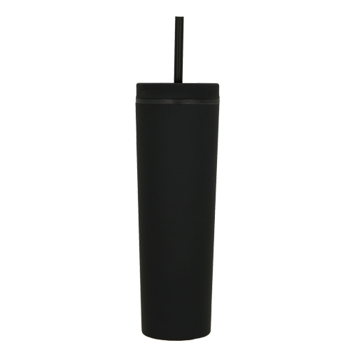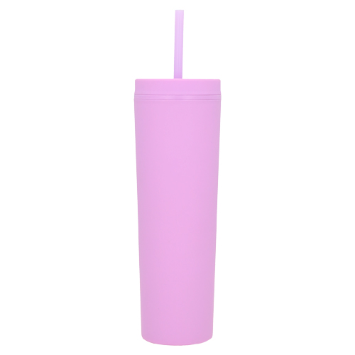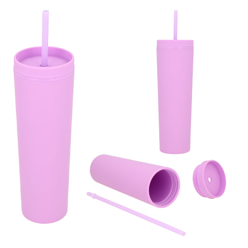 LAVANDA Termo de plástico con doble pared, tapa enroscable y acabado rubber. Incluye popote de plástico.