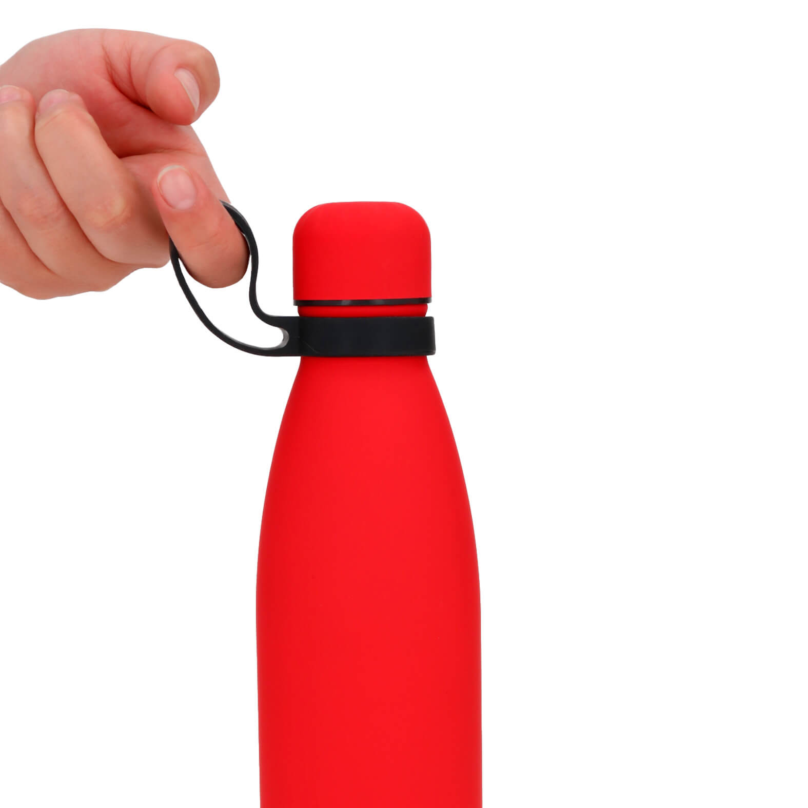 RANGER Termo con doble pared de acero inoxidable, insulado al vacío, acabado rubber, tapa enroscable y asa de silicón.