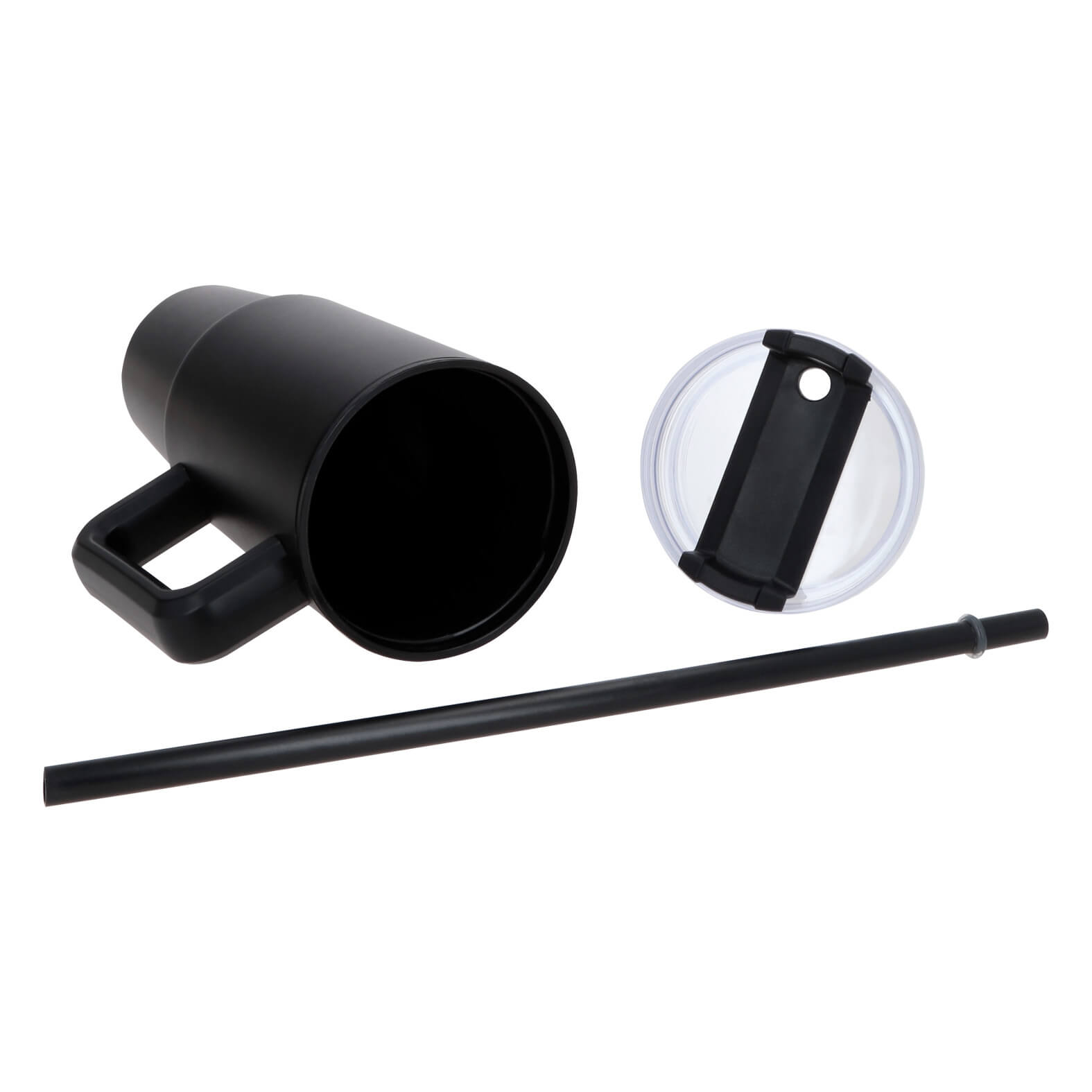 TAM Termo de doble pared con exterior de acero inoxidable acabado rugoso e interior de plástico, tapa enroscable, popote y asa. Cap. 900 ml.