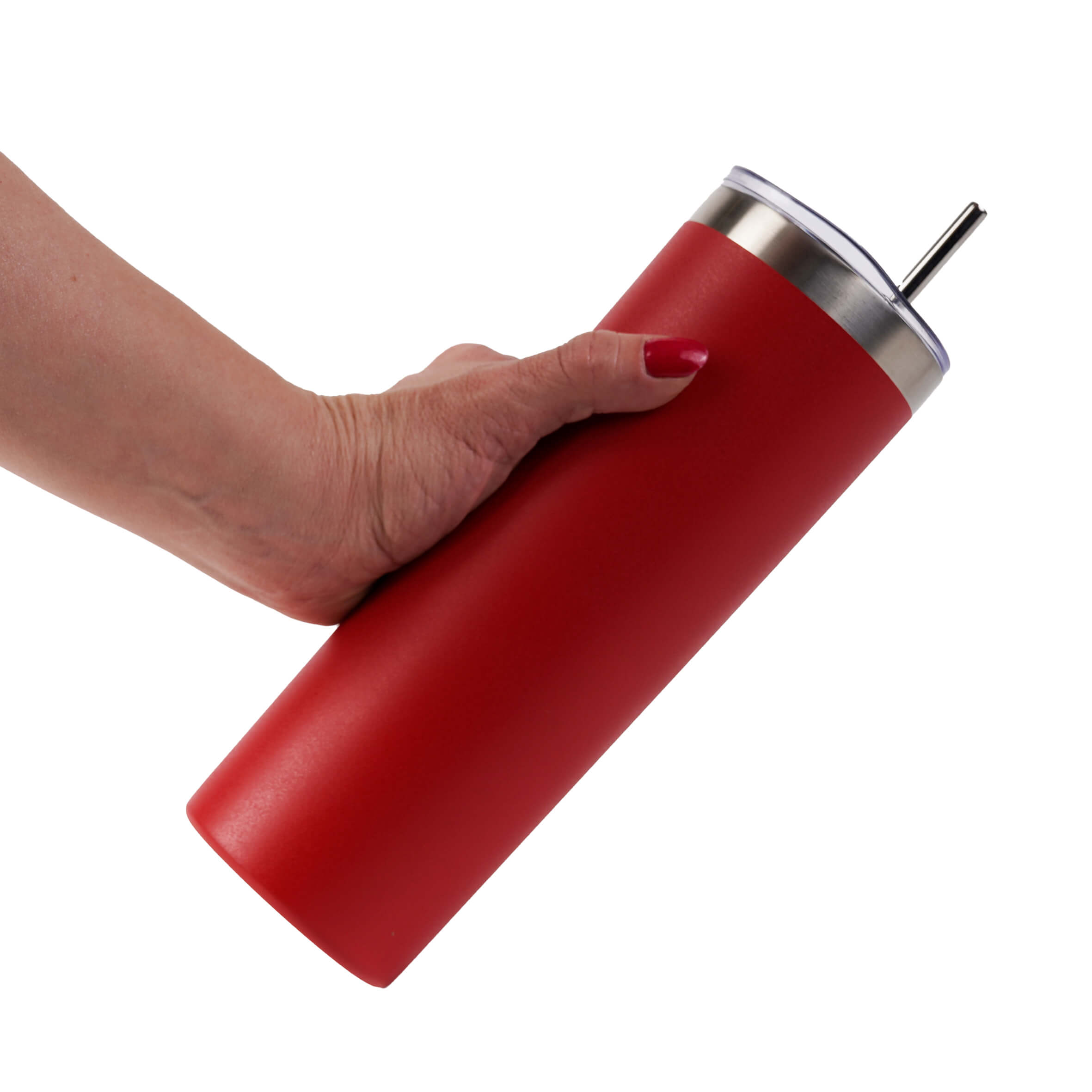 VIDANTA Termo con doble pared de acero inoxidable, insulado al vacio, con acabado platic painting, tapa de cierre a presión y seguro deslizable. Incluye popote de metal con limpiador.