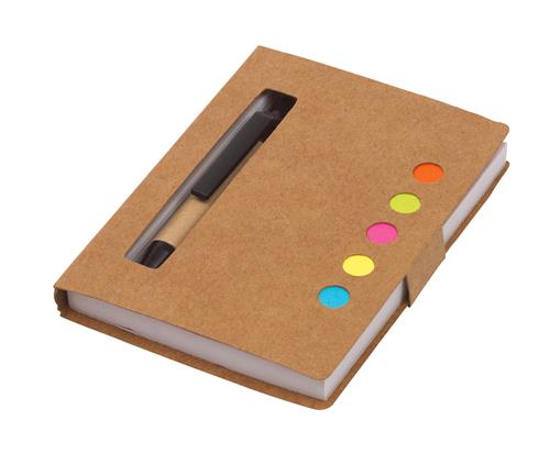 MINI NOTEBOOK "MEMO" 80 hojas lisas blancas. 5 blocs autoadhesivos rectangulares de diferentes colores. 1 bolígrafo de tinta negra.