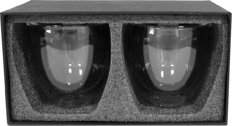 SET DE VASOS DE VIDRIO "GLASGOW" Set de dos vasos doble pared. Apto para bebidas frías y calientes. Presentación en caja de regalo.