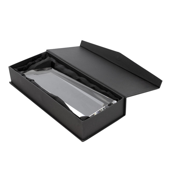 TROFEO "WINNER II" Trofeo de vidrio simil cristal. Presentación en estuche con cierre magnético y envoltorio de papel blanco.