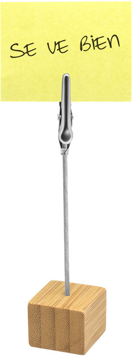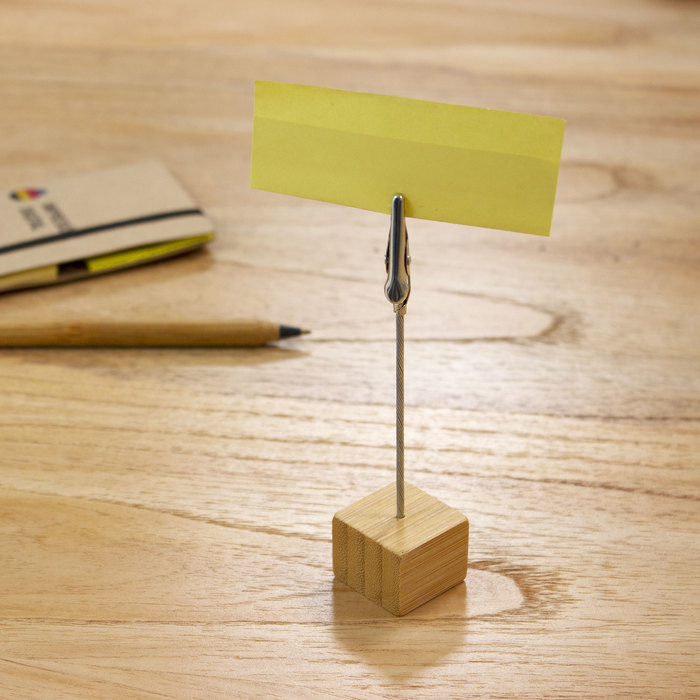 MEMO CLIP DE ESCRITORIO "BAMBSTICK" Bambú y metal. Memo clip de escritorio con base cúbica en bambú. Broche pinza cocodrilo de metal. Práctico, útil y transportable.