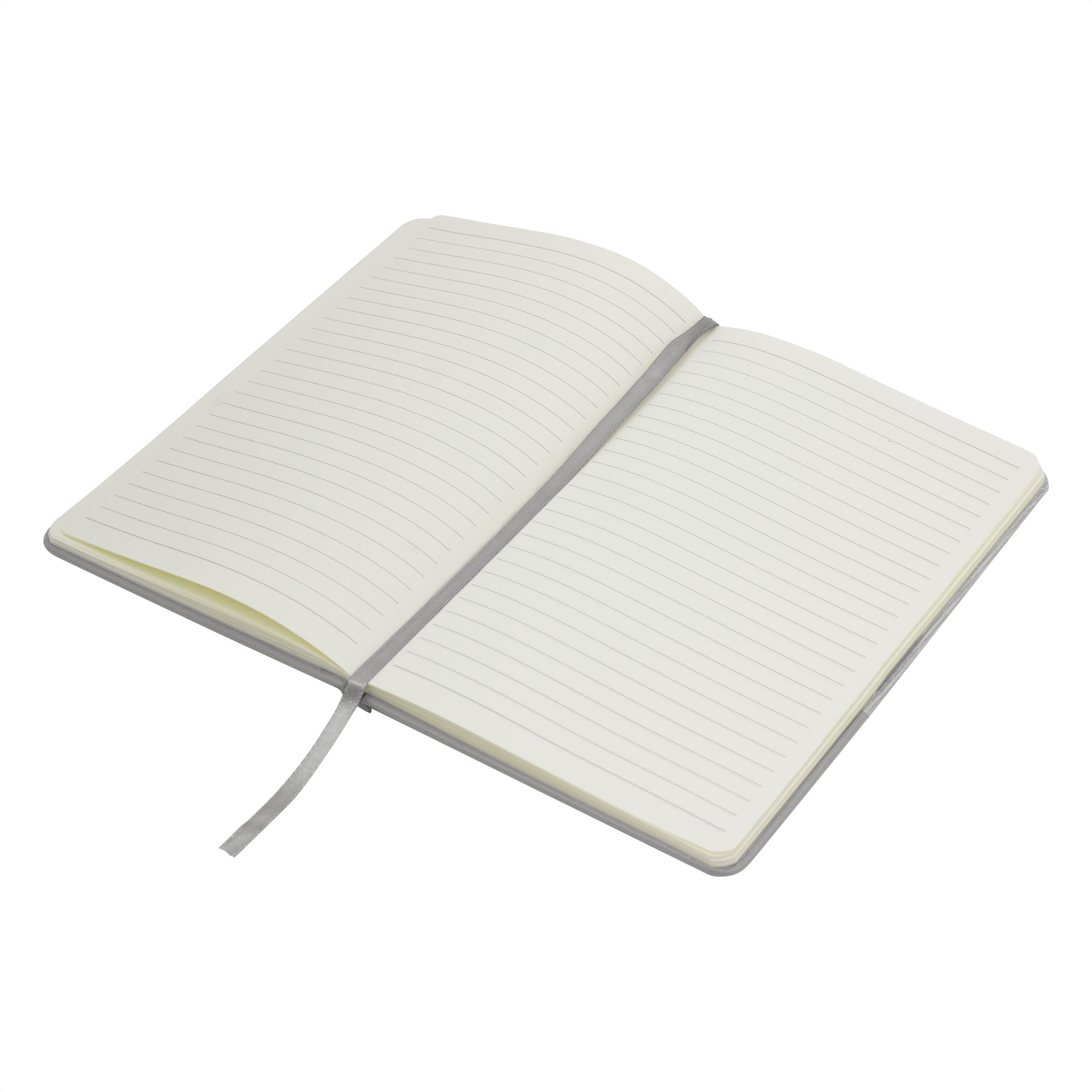 Libreta "GAM" Libreta. Tapa de cartón de 1,8 mm recubierta en poliuretano bicolor con textura suave al tacto. Interior de 80 hojas rayadas en papel obra crema de 70g. Encuadernación cosido. Incluye cinta señaladora del color de la tapa. Cierre con banda elástica del mismo color
