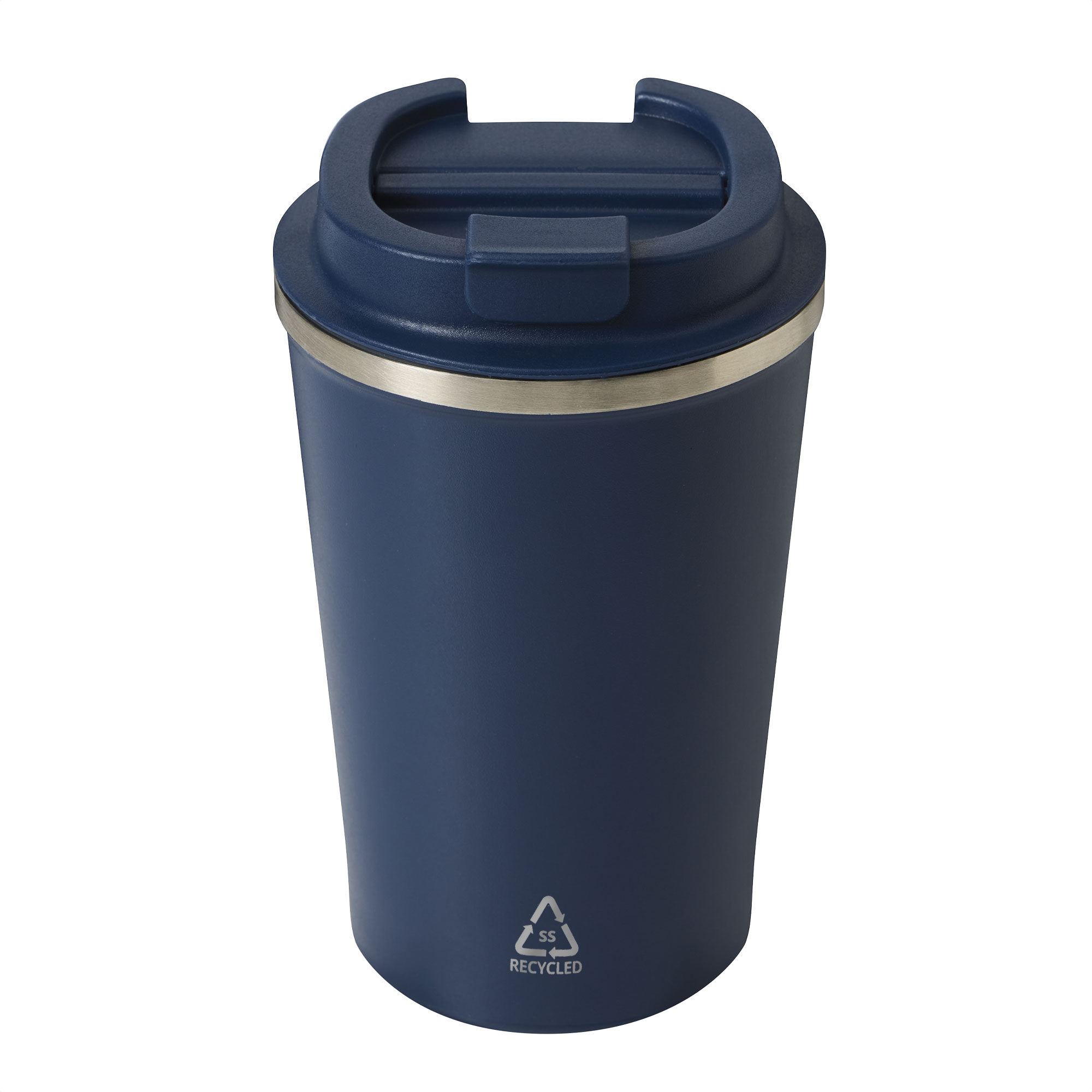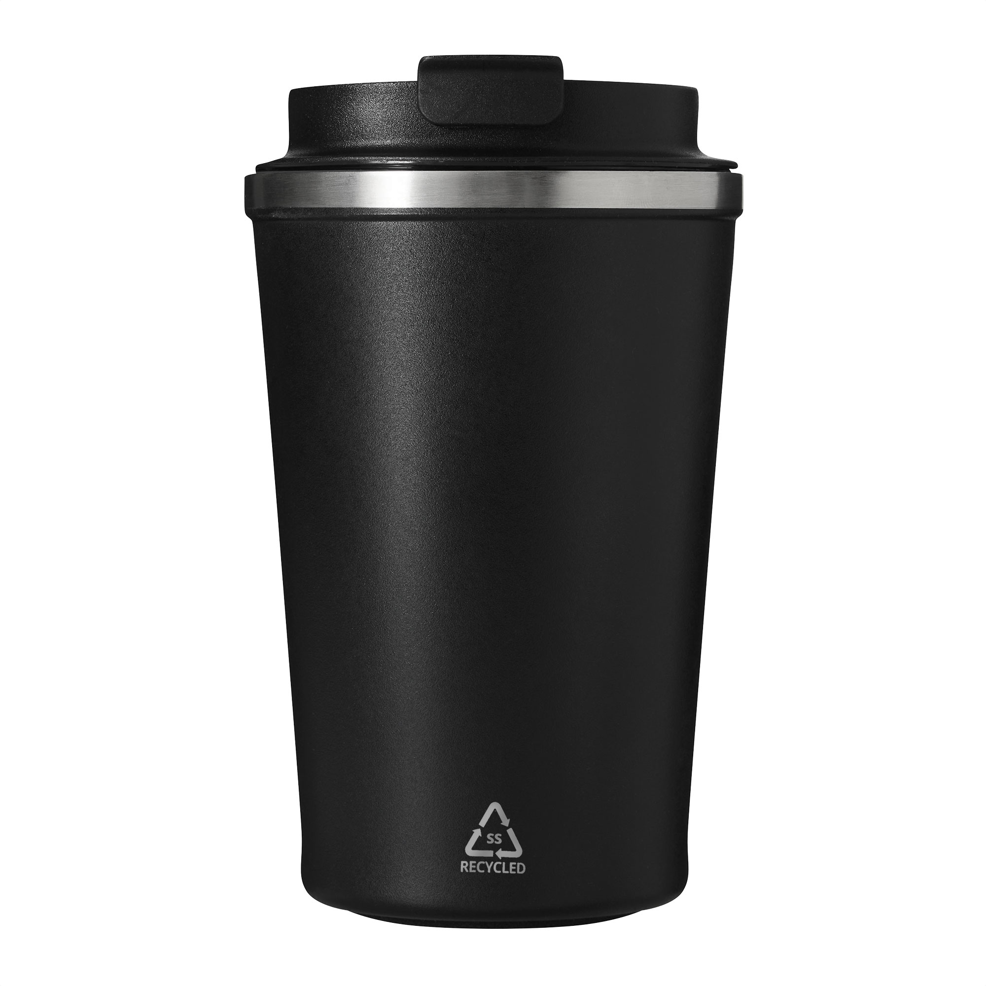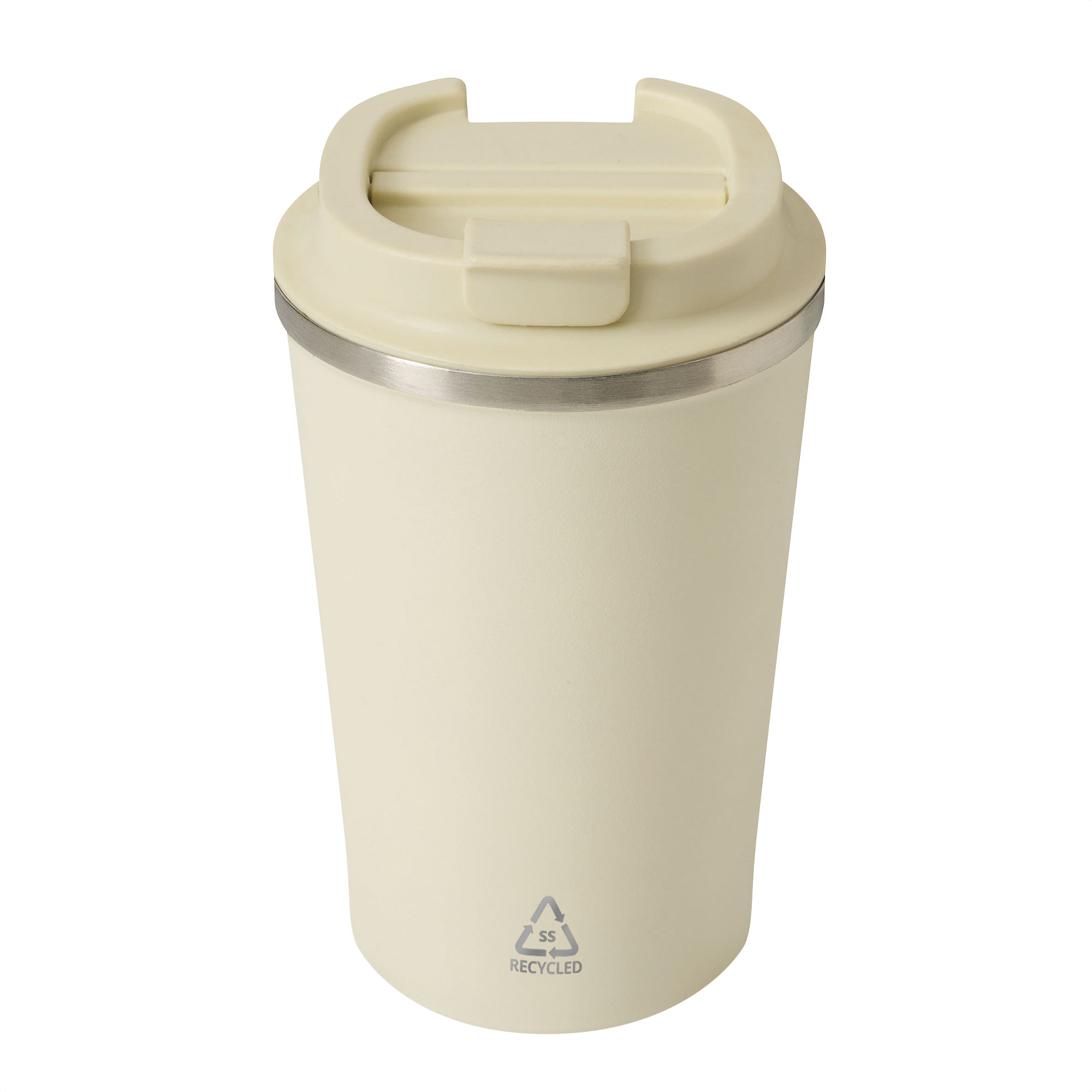 Mug térmico "CAPPU" Mug doble pared, sellado al vacío. Aislamiento térmico. Tecnología vacuum. Interior en acero 304 reciclado y exterior en acero 201 reciclado. Tapa de polipropileno a rosca, del mismo color que el vaso, con anillo de silicona y seguro antiderrame. Pintura con acabado mate, textura porosa. Base de silicona antideslizante. Mantiene hasta 8 hs la temperatura de las bebidas calientes y hasta 12 hs la de las bebidas frías