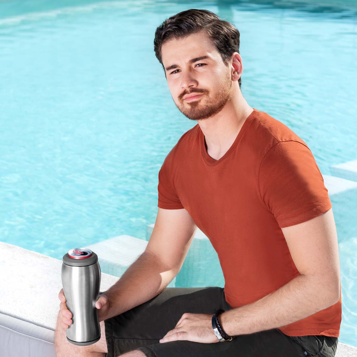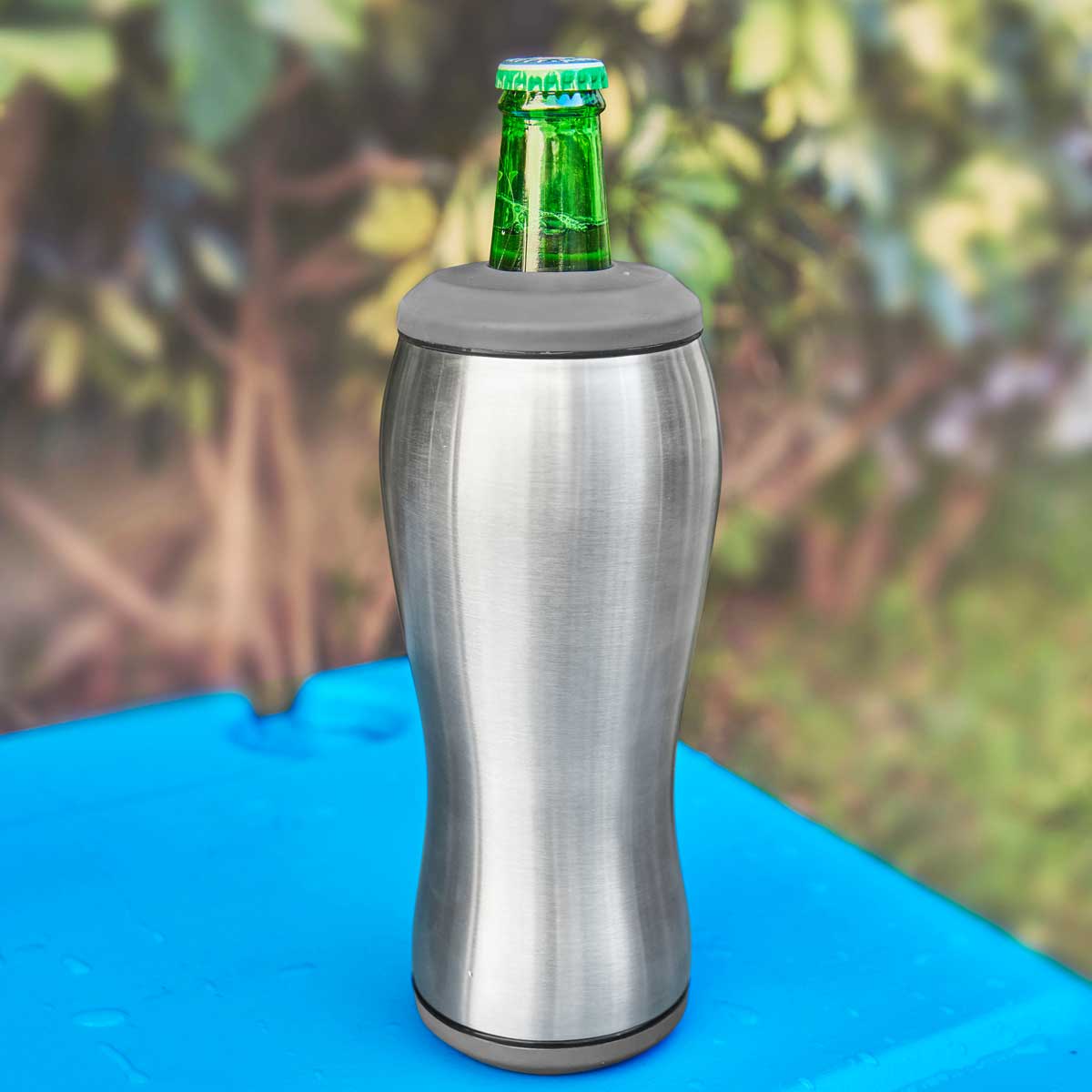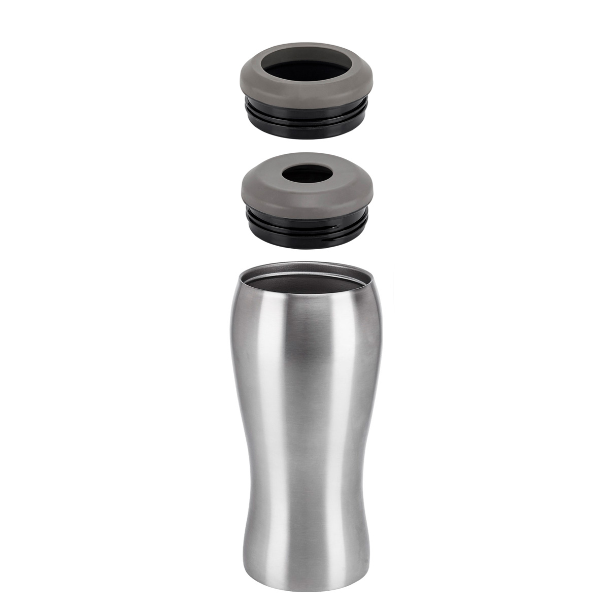 TERMO TERAMO - Doble pared. Pared interna y externa acero inoxidable. Tapas intercambiables para lata o botella. Mantiene la bebida fría. Incluye caja individual.