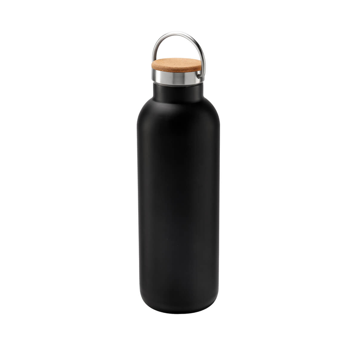 TERMO MERYT - Doble pared. Cerrado al vacío. Pared interna y externa de acero inoxidable. Tapa con sistema de rosca de acero inoxidable con corcho y asa metálica. Mantiene temperatura caliente 6 hrs y temperatura fría 12 hrs. Incluye caja individual.